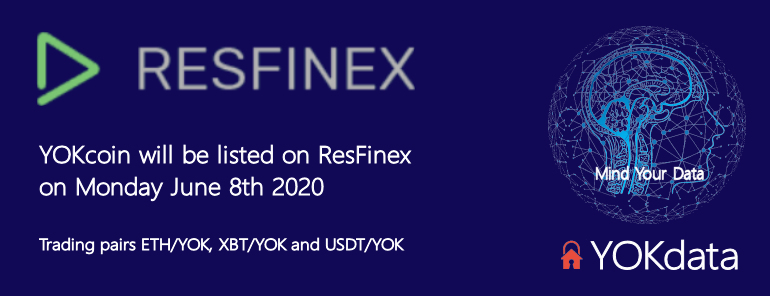 Since we use the YOKcoin to fund further development of YOKdata (our private and secure datastorage platform), you can imagine we are very happy to be recognized by Resfinex.